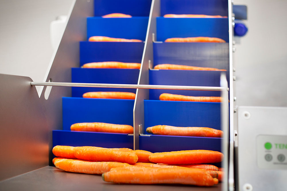 The carrot peeling method utilizes modern knife peeling machines that precisely remove the skin, minimizing raw material losses. This technology ensures a smooth surface without damaging the vegetable’s structure, resulting in extended freshness and an appealing look. Thanks to its high level of accuracy, the carrot retains its natural properties, and its uniform shape and cleanliness facilitate further processing in the gastronomy and food industry.